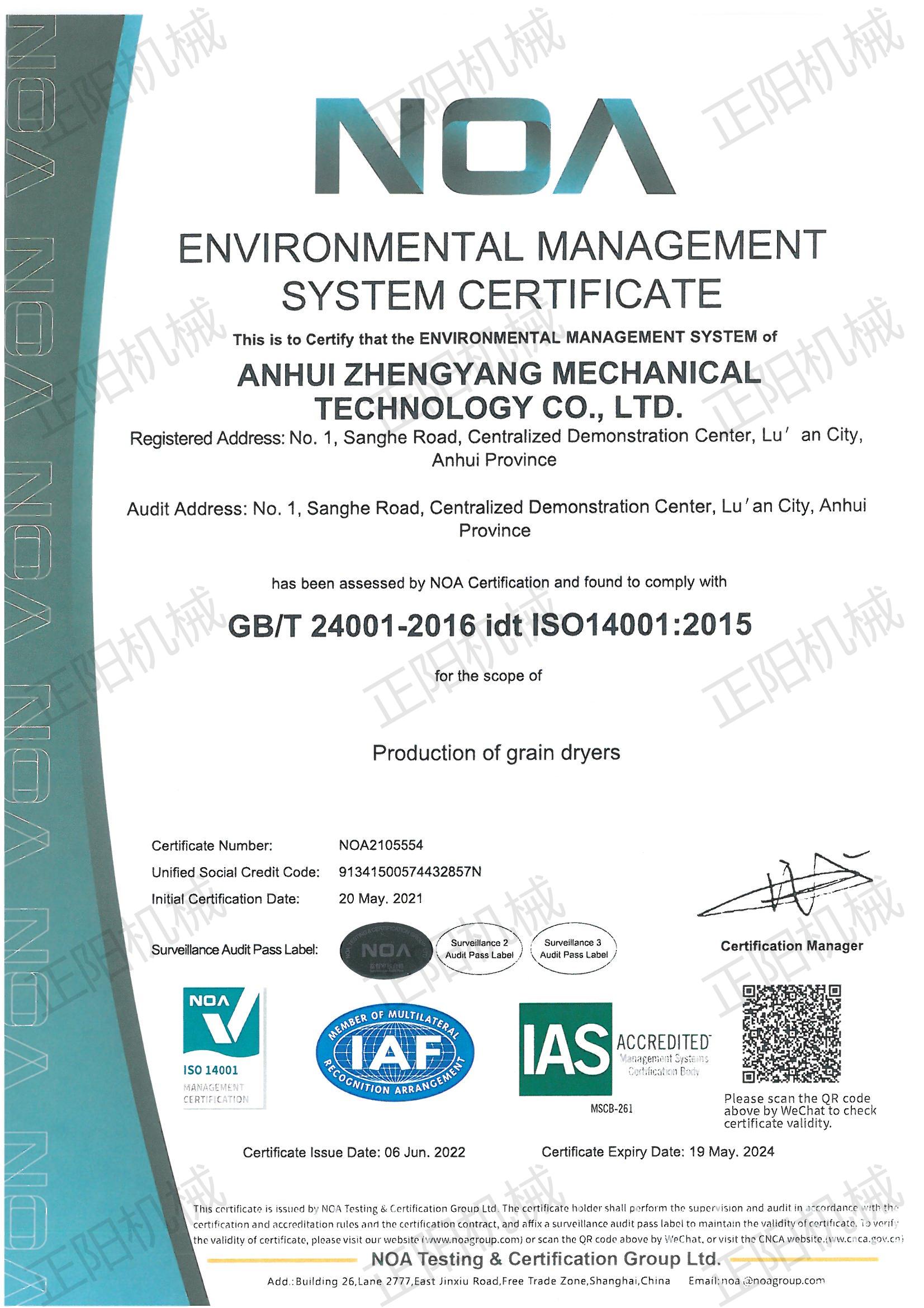 環(huán)境管理體系認(rèn)證證書(shū)